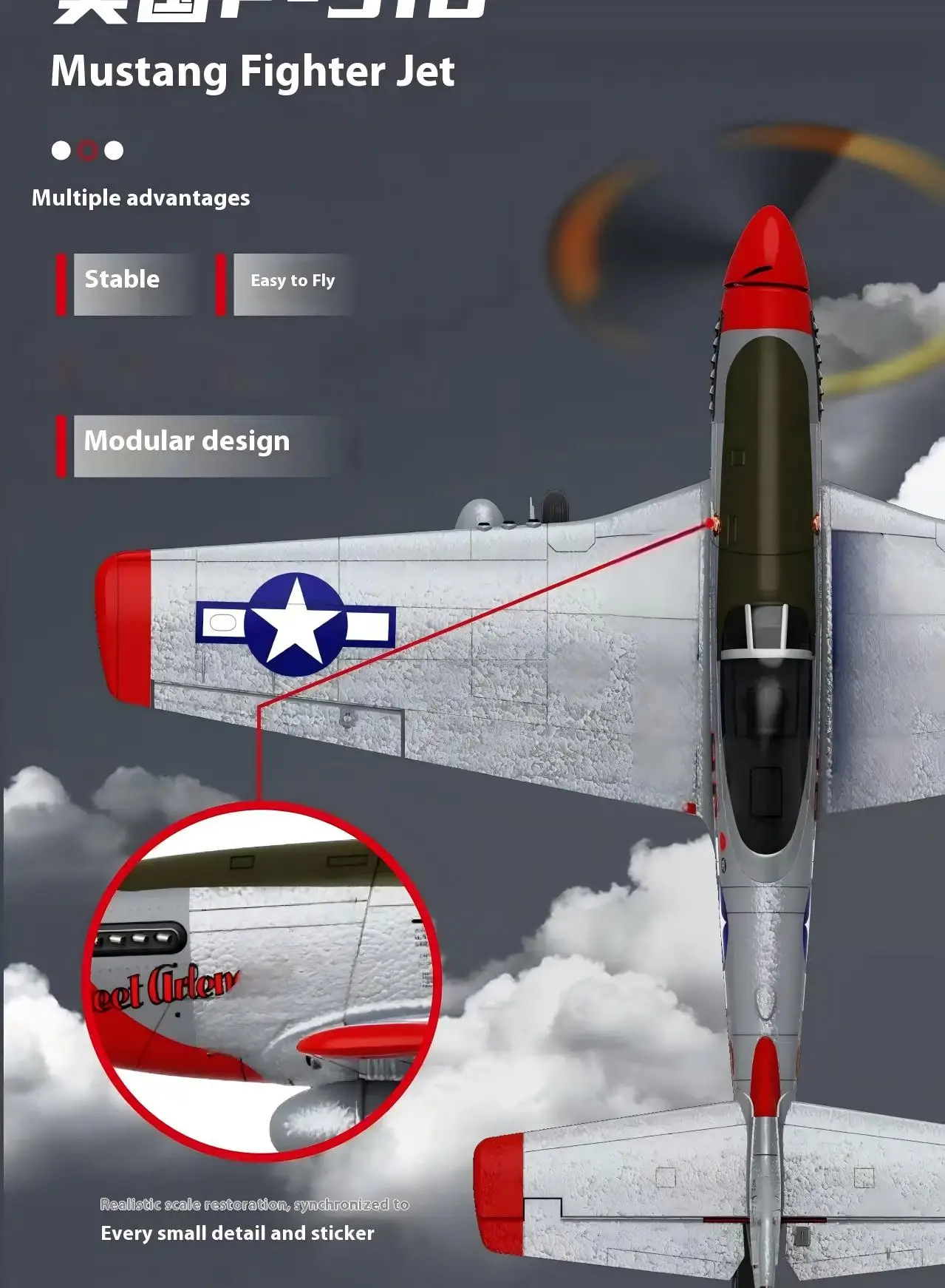 RC Plane 5CH 3D/6G Fixed-wing RC Airplane 2.4GHz P51D Mustang RTF for Adults Beginners Easy to Fly