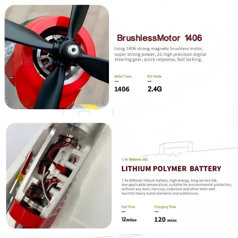 Featured strong powerful over-grade motor allows easy controlling to do aerobatic flying.