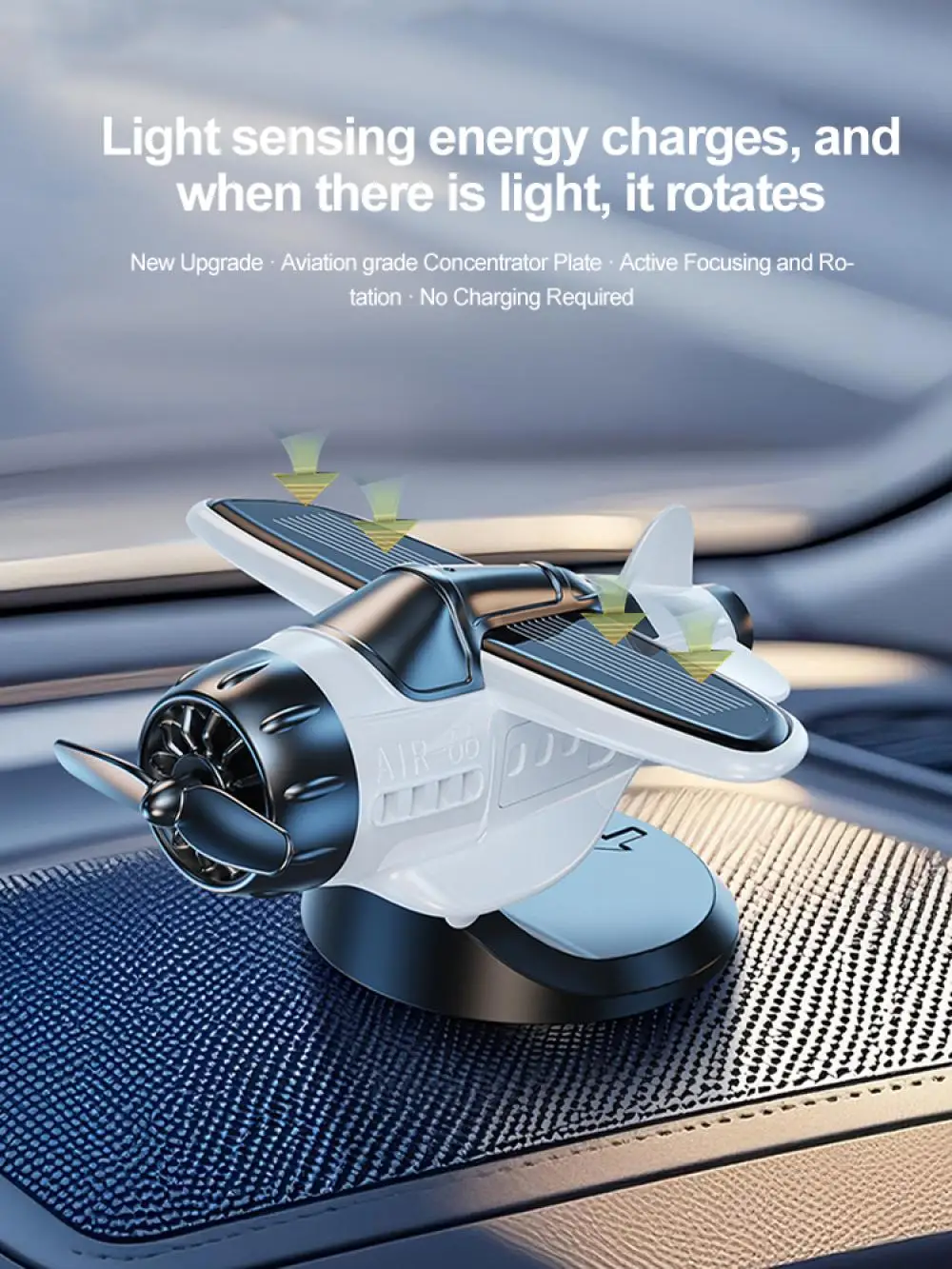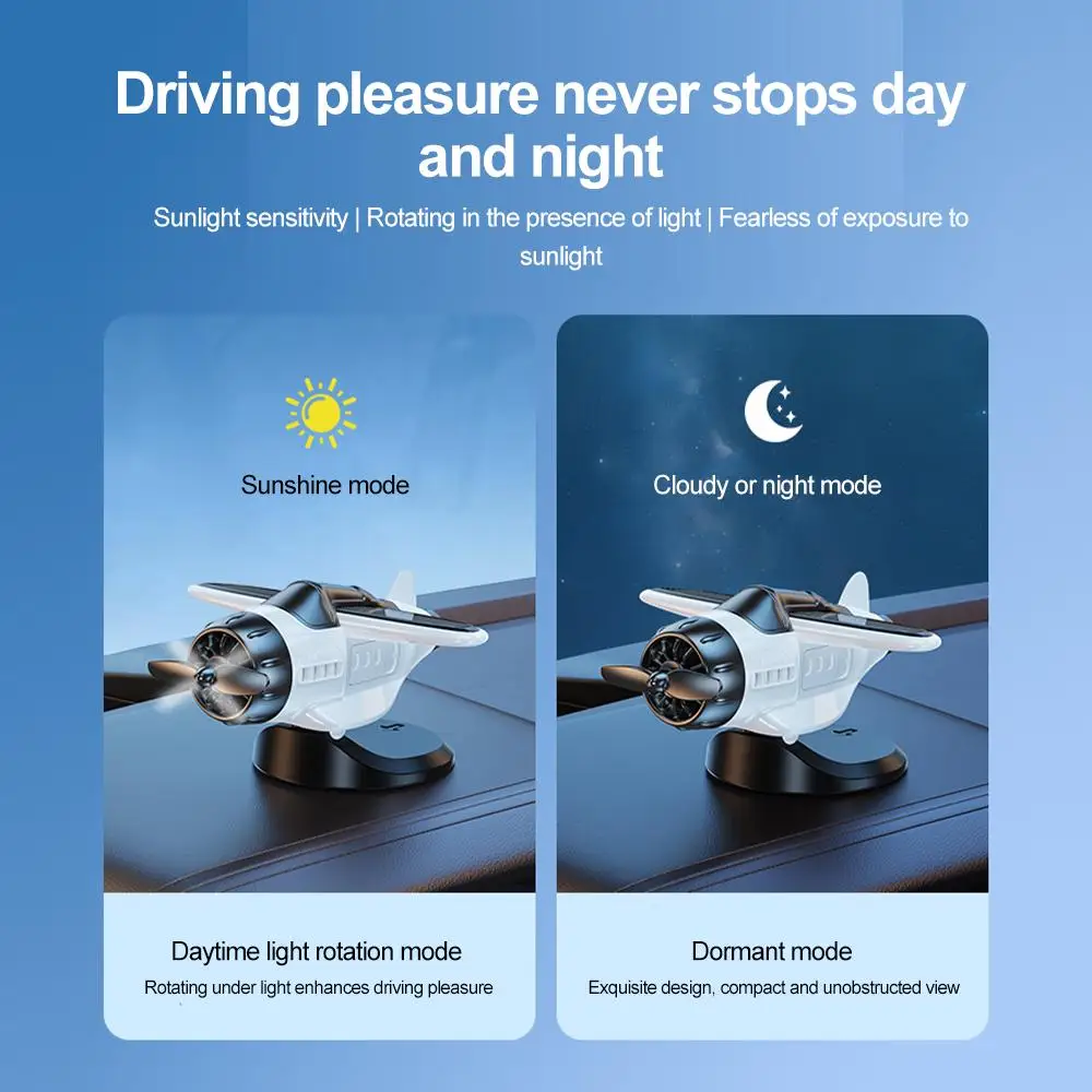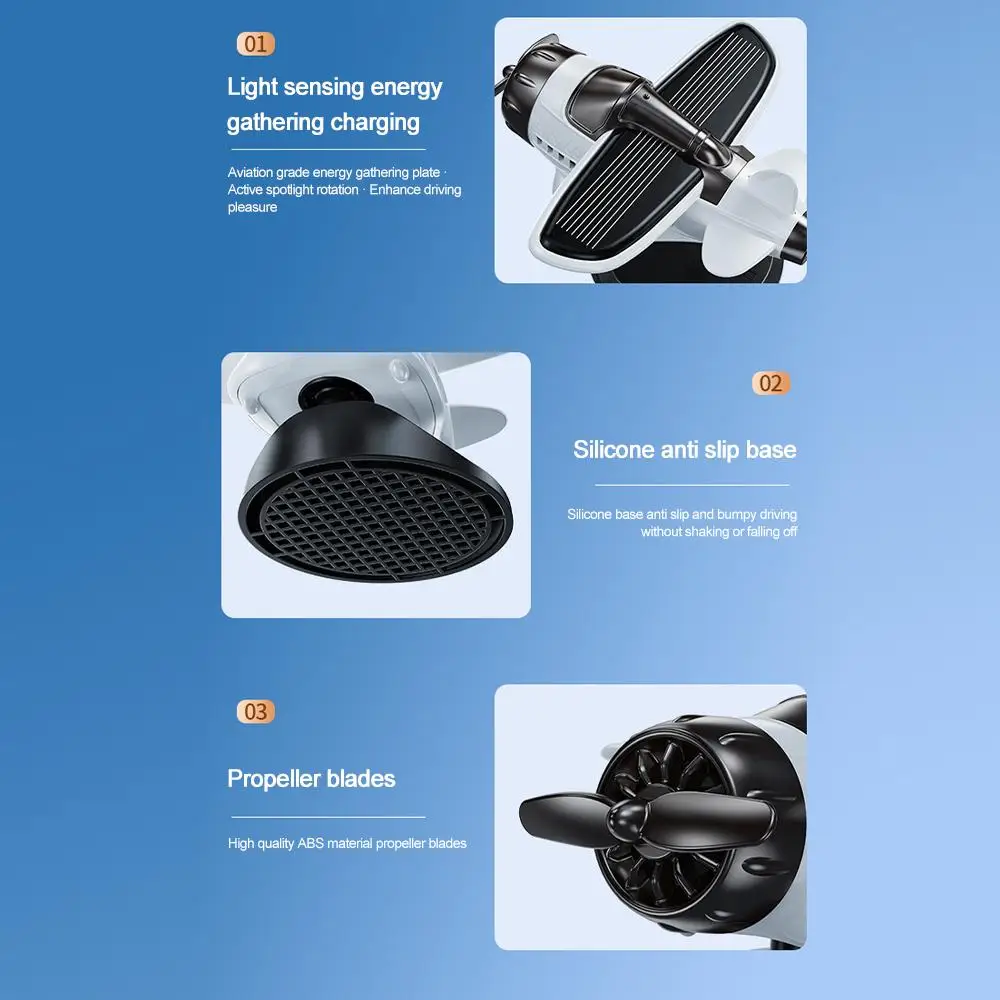 1.Unique Solar-Powered Design :Solar energy is used as energy to drive the propeller to run continuously, making it an eco-friendly and cost-effective decoration for your car or desk.