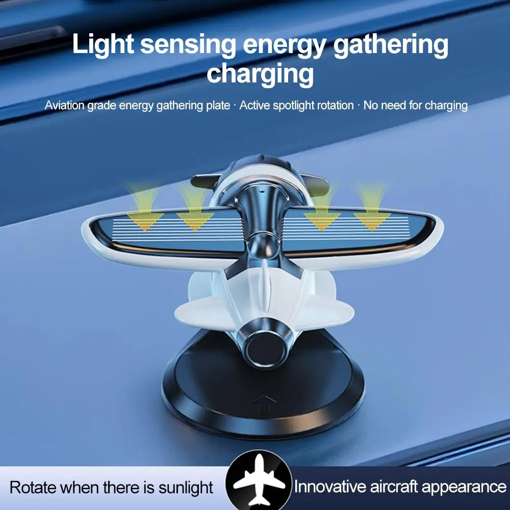 Solar Powered Aircraft For Car Tabletop Office Alloy Solar Energy Rotate Airplane Ornaments Solar Energy Rotate Helicopter Decor